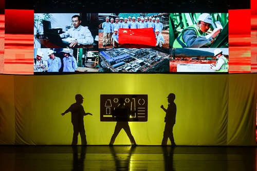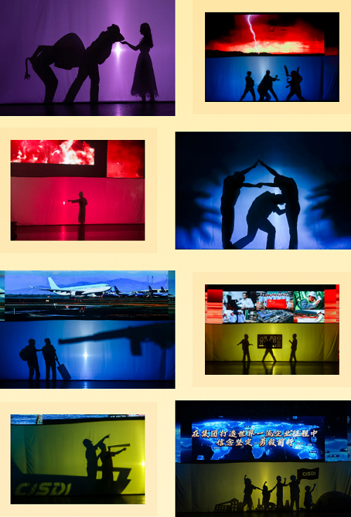剧目演职人员利用班余时间,在长达一个半月的时间中,每天排练三小时,克服持续40余度的高温,持续投入到作品创作中。参与创作的演员表示,“在节目中我感受到了公司前辈积极开拓海外市场的不易,也被公司永争第一的追求所感染,更充分领会了我们赛迪团结奋斗的企业文化。我想我们选择光影剧的表演形式,正是因为这一个个剪影是每一个奋斗的前辈,是每一个响应国家“一带一路”倡议的赛迪工程咨询人。”