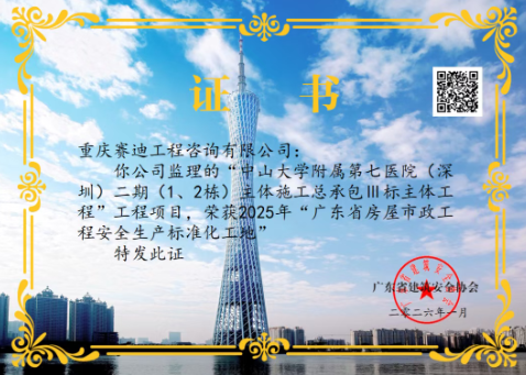 1月初,由重庆赛迪工程咨询有限公司提供全过程工程咨询服务的中山大学附属第七医院(深圳)二期项目,以卓越的工程品质与科学的精细化管理,成功获评2025年广东省房屋市政工程安全生产标准化工地。这一荣誉不仅是对项目建设安全管理水平的高度认可,更是对全体参建单位恪守匠心、精益求精的生动诠释。