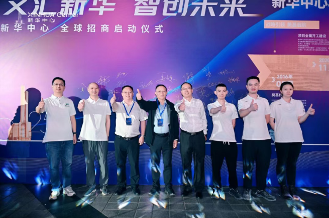 2025年10月13日晚,解放碑商圈灯火璀璨,由赛迪工程咨询监理的重庆市级重点项目、解放碑近十年来首个面积超20万方的超大型文化商业综合体——新华中心全球招商启动仪式隆重举行,重庆市渝中区委书记等领导出席仪式,白俄罗斯、英国等国驻渝总领事馆代表,重庆新华出版集团等市属国企、文化机构、商协会、重点企业代表参加。赛迪工程咨询作为项目监理单位应邀出席,共同见证项目重要时刻。在与会嘉宾共同按下启幕柱的同时,新华中心楼体被瞬间点亮,标志着新华中心进入全球招商新阶段。