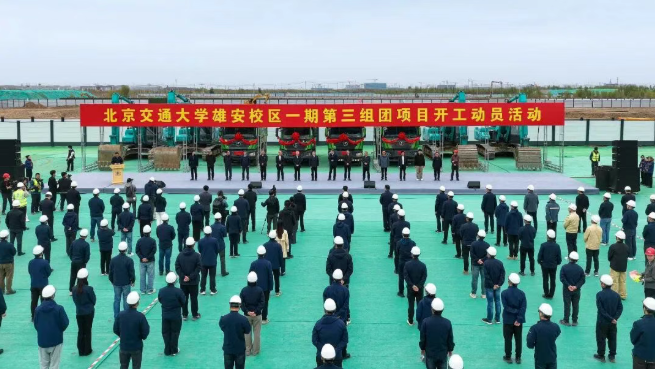 2026年4月13日,北京交通大学雄安校区一期第三组团项目举办了开工动员活动。雄安新区党工委委员、管委会副主任,教育局党组书记、局长,北京交通大学校长、党委副书记,副校长以及各参建单位有关领导和建设者代表等180余人参加活动。赛迪工程咨询党委书记、董事长冉鹏应邀出席。